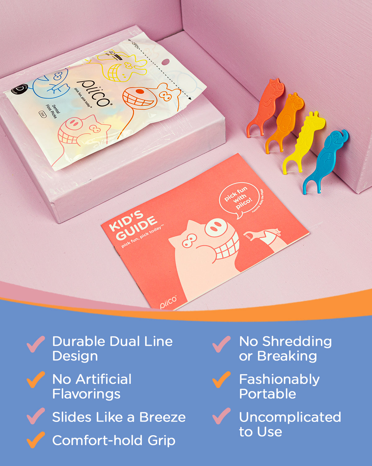 - Pick Fun, Pick Today. Make flossing cool with Piico Floss Picks for kids. Get your children excited to floss and build up their dental health routine with colorful animals in charming designs.